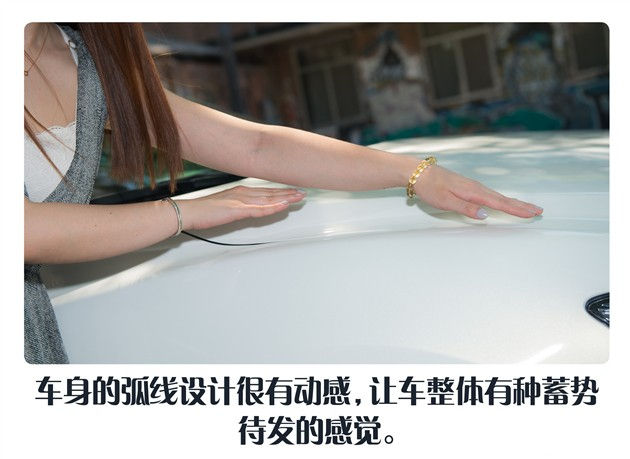 殷绮:我很喜欢车头的设计,大尺寸的五边形进气格栅,犀利的大灯都是我的最爱,进气格栅处延伸出的镀铬饰条将它和大灯连接在一起,打造了一个生猛的面孔,女孩子开这样的车让我感觉很有冲劲,所以我很喜欢。它的镀铬装饰前后是相互呼应的,这样有整体性的设计也是我的偏爱。