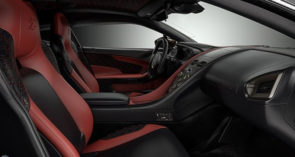 内饰设计部分,Vanquish Zagato概念车采用黑色和红色搭配,中控台面板呈现出碳纤维的风格。在头枕、车门门槛、座椅缝线上也都有“Z”字标识。