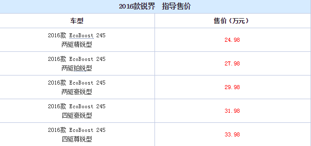 长安福特新款锐界售价曝光 定价24.98-33.98万