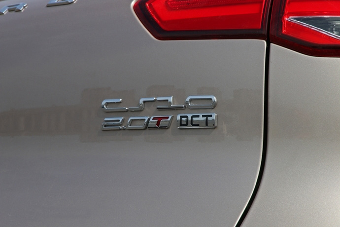 外观方面:猎豹CS10自动挡造型大气,车身线条突出,整体运用了“猎弓”设计概念,展现硬朗而又动感的风格。尾部2.0T DCT标签也表明这是自动挡的型号。车身尺寸方面,猎豹CS10自动挡的车身尺寸仍为4663mm*1875mm*1700mm,轴距为2700mm。
