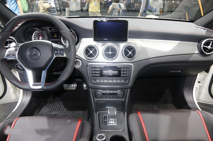 内饰方面:新车与奔驰GLA整体布局基本保持一致,座椅方面采用了包裹性很强的运动座椅,搭配红色拼接装饰,显得动感十足。该款车的中控台采用了碳纤维打造,红色的仪表指针与整体的运动风格相呼应。