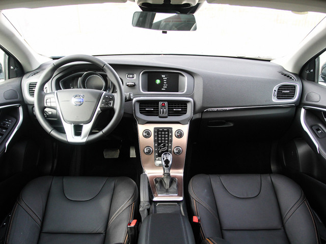 内饰方面,新车主要在材质的运用上进行了一系列升级。比如,最新款沃尔沃V40采用了新的炭/金色方向盘,且在车内多处辅以铝制材料进行装饰等。此外还值得一提的是,新车装载了最新的智能交互应用系统。