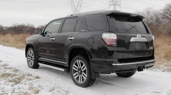 丰田超霸这款硬派越野车,有着244mm的离地间隙,并且搭配了20寸的合金轮毂以及越野轮胎,四驱系统配合硕大的20寸的越野胎,过雪地也不会打滑,过弯时也不会转向过度,可谓是一款非常不错的越野神器。车尾则可以说是丰田陆地巡洋舰的缩小版了,其尾灯显得比较小,而尾翼则加在了车顶上,行李架位置超高,增强了实用性。