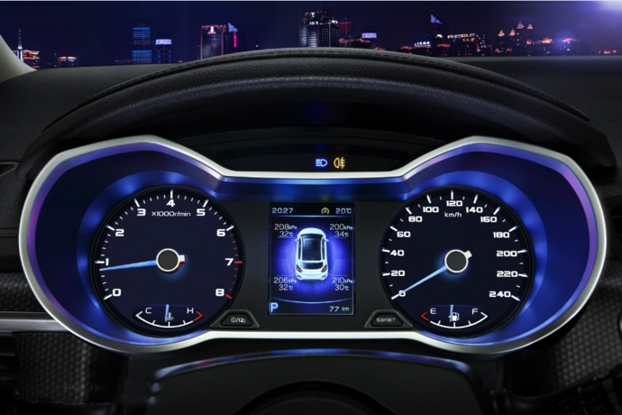 内饰方面:该车的内饰设计非常舒展,双色搭配的内饰和网格状中控饰板更加彰显时尚感。新车仪表盘采用传统的双仪表搭配中央彩色液晶显示屏设计,并配备有镀铬边框,蓝底色光源使其视觉效果极佳。中控台中央还配备有8英寸触摸液晶显示屏,并可支持苹果CarPlay系统和 G-netlink智能互联系统。下方为空调控制区域,整体设计也较为简洁。而新车内部还设计有很多中国元素,例如回纹式扬声器和流畅的车内门把手等。此外,新车还将配备有双色真皮座椅,并提供后排座椅4/6放倒,从而进一步提升新车的储物空间。