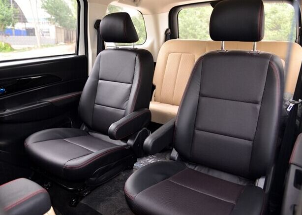 座椅方面,该车采用了2+2+3的布局,在材质和颜色方面预计会有黑色皮革座椅、黑/米色织物座椅。且均配有三点式安全带和头枕(后排暂未安装)。