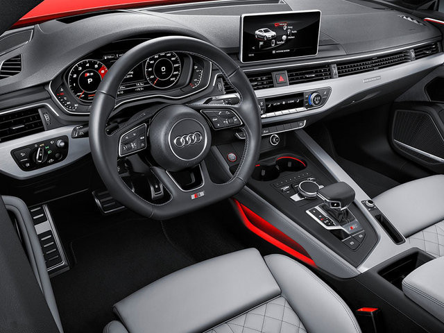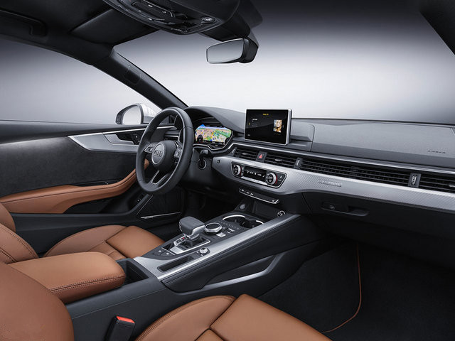 看完了外观,那么就让我们走进车内去看看,奥迪为全新A5 Coupe/S5 Coupe的内饰赋予了更强的科技感。首先它延续了全新奥迪A4的全液晶12.3英寸仪表盘,这个仪表盘可变换多种菜单显示形式。另外,全新样式的三幅式多功能方向盘、一块8.3英寸独立中控液晶屏、以及科技感倍增的换挡机构,都无一例外的出现在全新车型之上。