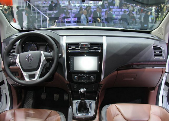风行SX6采用了棕色和黑色搭配的风格,内饰更有豪华感,T型中控台大量采用了银色的装饰件,最大的看点是搭载了8英寸的中控液晶屏,科技感十足。多功能方向盘是东风风行的家族式风格,采用了炮筒状的运动仪表,中间为液晶屏,可以显示更多的行车信息。