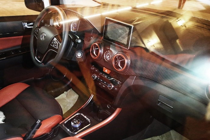 内饰方面:新车内饰也与绅宝X25大致相同,中控台层次分明。上部有碳纤维饰板进行装饰,独立的液晶显示屏和两个空调出风口中间的时钟非常显眼;中部为多媒体和空调的控制区域。唯一与绅宝X25不同点在于换挡机构,北汽EX200采用了旋钮式换挡方式,比较新颖。