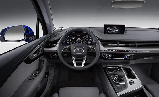 内饰的配置方面,奥迪为2017款Q7配备了完善的内置系统,其中包含多功能方向盘、后排娱乐系统、双色座椅包、全景影像及抬头显示等功能、自适应巡航、主动式车道偏离警告等配置。2017款Q7的第三排座椅为选装配置,而像前后排座椅加热以及通风功能也均是选装项。