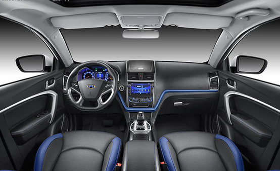 内饰上,帝豪EV色调以黑色为主,全黑皮质座椅加入了靛蓝皮质包边,再加上银色装饰条的搭配运用,为新车营造了不错的质感表现。配置上,7寸炫彩智行组合仪表、造型前卫的档把、多功能运动方向盘等,更为新车内部带来了更多的科技感。
