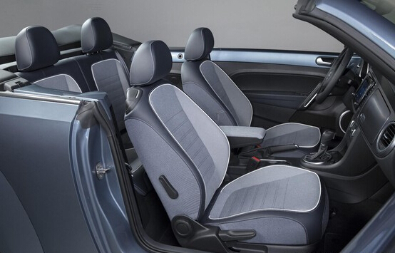 内饰方面,整体依旧采用亮色来营造活泼的氛围。富有运动感的镂空方向盘、面板中央的三组仪表设计等也是值得关注的亮点。值得一提的是,全新大众甲壳虫将推出的牛仔屋顶和牛仔面料座椅,从图片中看到,新车采用磨砂蓝色油漆装饰,深蓝色软顶别具一格,特殊之处还在于座椅采用有质感的牛仔面料打造,结合深蓝色皮革的角和边中牛仔头枕,这就使得新车看起来更加的时尚动感可爱。另一方面,大众也针对男性市场的客户需求,新车仪表板设计上精心采用金属材质,而且还运用了皮革运动方向盘。