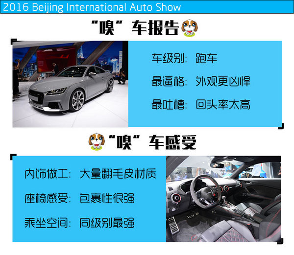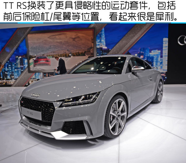 天翼汽车讯,近期,在2016北京车展上首发了全新奥迪TT RS车型,是TT车型的最强型号。在外观方面,新车加入了更多的具视觉侵略性的性能套件,在内饰上,也应用了更多的翻毛皮材料,整体设计都是以性能取向为主,能给人带来非常强烈的驾驶欲望。