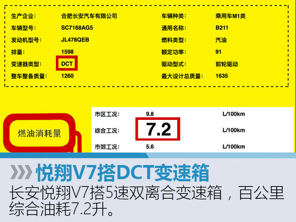 搭5速双离合变速箱 长安新悦翔V7将上市