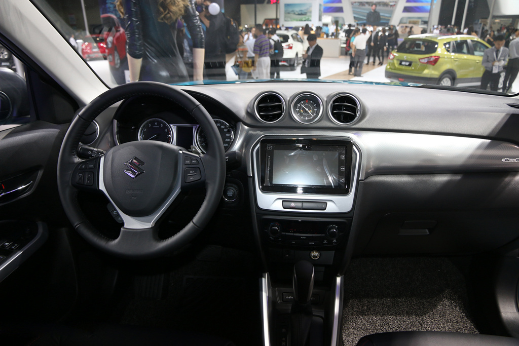 外观方面:全新一代维特拉是基于去年法兰克福车展上亮相的铃木iV-4概念车设计而来,整体车型很大气。新车采用了双辐条镀铬进气格栅,并与较为方正的前大灯相连,再加上厚重的前保险杠,视觉效果较为敦实。新车前保险杠两侧搭配圆形雾灯和竖直式LED日间行车灯设计,让整个前脸又充满一些时尚气息。