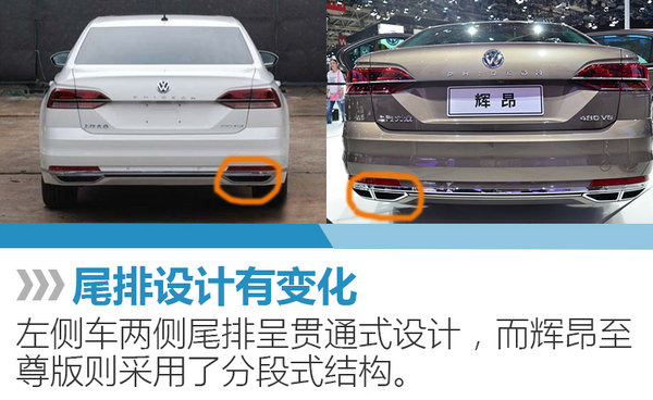 尾部方面,申报图中的入门版辉昂采用了全新的尾排造型,由至尊版的分段式结构调整为贯通式设计。在笔者看来,这样的变动并没有降低整车的品质,相反倒显得更为简单利落。