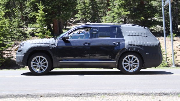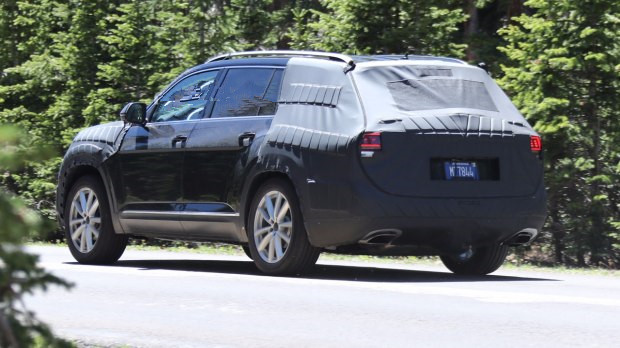 最新的谍照显示,大众这款中型SUV褪去了此前采用的Jeep大切诺基伪装,我们能够看出其采用了更加粗犷的前进气格栅造型,前大灯组造型与CrossBlue概念车基本保持一致。
