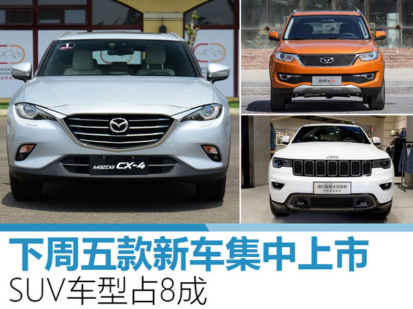 下周五款新车上市 SUV车型有4款