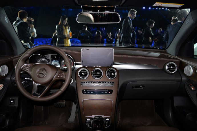 内饰方面:北京奔驰GLC级和新C级风格很相似,尤其是在豪华感方面,相比现款GLK级的内饰设计有质的提升,这主要体现在风格更加简约的中控面板、新COMAND系统的控制机构、液晶显示的仪表和中控屏,同时内装部分大面积的真皮包裹则进一步提升了质感。此外,北京奔驰GLC级还保留了现款GLK的双天窗设计。