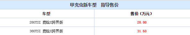 日前,大众汽车官方宣布,甲壳虫鹿晗X跨界版正式上市,新车推出了280TSI和380TSI两款车型供选,售价分别为28.88万和31.68万。