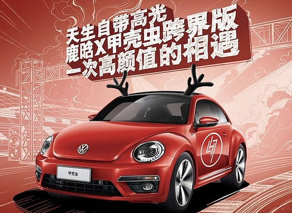外观方面,甲壳虫鹿晗X跨界版配备有R-line运动车身套件以及鹿晗专属跨界套装,其中包括LH7专属车标、鹿角车顶和LH7车门装饰。
