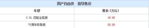 Jeep自由侠新车型正式售价曝光