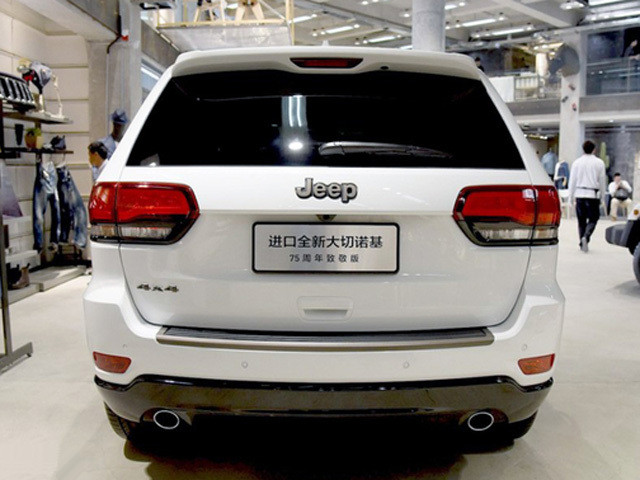 外观方面,2016款大切诺基的外观和内饰设计基本延续了老款车型。但75周年致敬版则拥有独特的设计风格,该车采用棕色橘边标志、专属进气格栅及专属铭牌;新上部前围与新高光黑下部前围、古铜色雾灯装饰环及拖钩、黑色车窗饰框、车身同色外后视镜及门把手、古铜色后踏板及行李架架体等色彩搭配更具视觉冲击力;新车采用75周年专属熏黑LED尾灯及LED雾灯、新20”哑光古铜色铝轮圈。