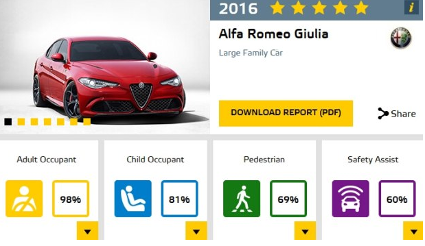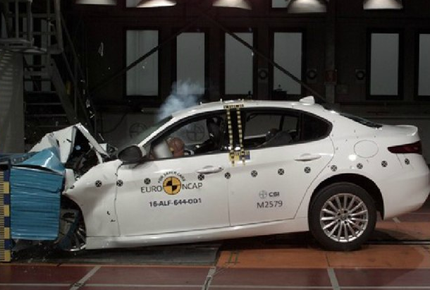 Giulia是阿尔法罗密欧推出的一款全新中型轿车,经过碰撞测试,其最终获得了五星的成绩。从碰撞测试图片可以看出,在碰撞发生后,Giulia前部吸能区变形较为明显,驾驶室整体结构基本并未发生明显的变形。在鞭打测试中,该车座椅及头枕能够给乘客的颈椎起到良好的保护,有效降低了追尾等事故所造成的伤害。