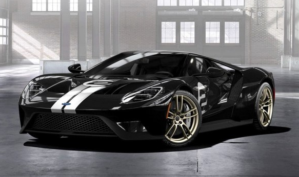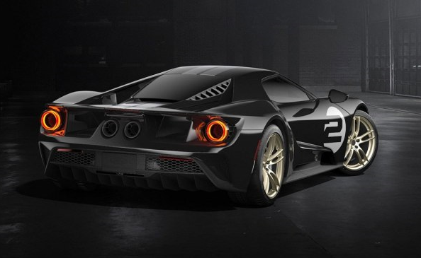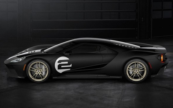 这款新车外观采用了独特的金属黑或亚光黑车漆,并辅以经典的银色拉花,全新的20英寸轮圈采用了金色涂装。这一切都与1966年勒芒24小时耐力中最后冲线的福特GT40 MarkII 2号赛车保持一致,甚至福特GT'66 Heritage Edition还沿用了当年赛车上的2号数字。