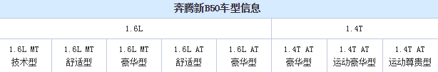 新车将推出1.6L和1.4T两个排量共8款车型供选。由此来看,奔腾全新B50的起售价将低于现款车型(现款奔腾B50售价区间9.28-12.28万)。