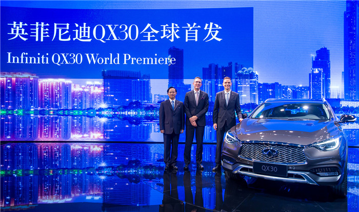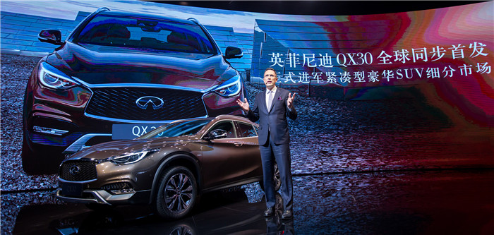 “这是英菲尼迪首次同步首发一款车型,在广州车展与洛杉矶车展同步首发QX30,彰显了英菲尼迪对其全球最大的两个市场的承诺与高度重视。”英菲尼迪全球总裁罗兰·克鲁格(Roland Krueger)表示,“英菲尼迪已经成功走上一条全球生产布局与产品阵营扩张之路,QX30的推出恰逢这一机遇。这款豪华紧凑型SUV的面世也是英菲尼迪打造一线豪华汽车品牌历程上的重要里程碑。”
