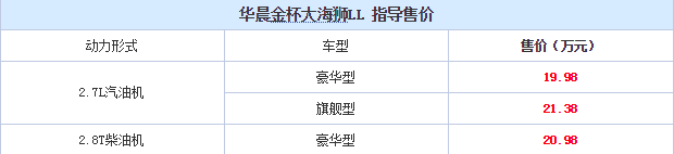 动力方面,大海狮LL搭载2.7L汽油发动机和2.8T涡轮增压柴油发动机,其中2.8T柴油发动机来自五十铃,该发动机在燃油经济性和动力性能方面做到了较好的平衡。