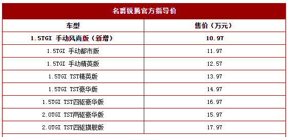 名爵锐腾新增入门车型 售10.97万元