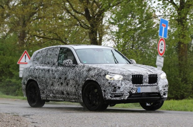 从谍照来看,新一代X3(代号G01)性能版M40i车型的内饰部分覆盖了大面积伪装,整体布局有所升级,装配有电子挡杆及宝马M系列的三辐式方向盘。新车中控台处搭载一款大尺寸娱乐信息显示屏,并将配备宝马最新的iDrive系统。