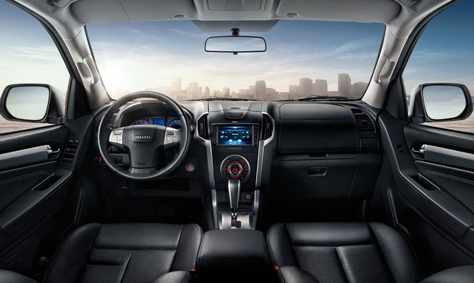 内饰方面:五十铃mu-X的中控布局十分协调,与其D-MAX皮卡车型的中控设计十分相似。新车后排还配有一块 10.2英寸的显示屏。五十铃MU-X采用非承载式车身,座椅布局为三排七座式设计,第二排座椅可4:6放倒和翻折,第三排可5:5放倒。新车共有19处储物空间和12处茶托,在同级别车中处于优势地位。