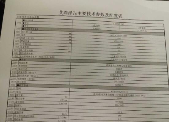 新款艾瑞泽7部分配置信息及售价疑似曝光