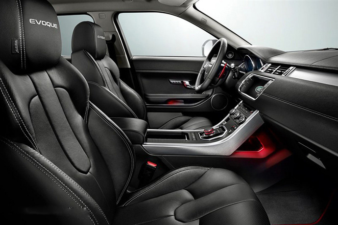 内饰方面:揽胜极光NW8 Brit限量版内部采用黑色皮革包裹,并配备有银色装饰条,该车的配置上还采用了红色装饰,例如换挡拨片、换挡旋钮以及车内氛围灯等。
