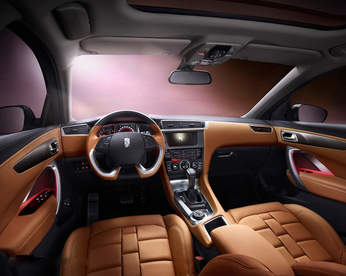 内饰方面:DS 6采用了大面积的皮质材料以及镀铬装饰,非常有豪华感。新车采用了三幅式多功能方向盘,中控台的设计层次分明,由上到下依次为空调出风口、液晶显示屏以及多功能控制区。