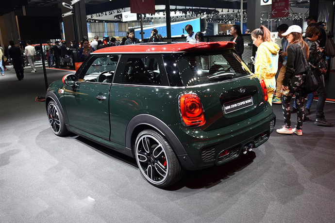 外观方面:全新MINI JCW基于新一代MINI三门版进行打造,外观采用了更加夸张的设计风格,前保险杠造型更加动感,并绘制有全新的车身拉花。新车尾部依旧运用了与MINI COOPER S样式相同的中置双出排气管布局,其上方还配备了一块固定式扰流板,该款车型还采用了全新的运动化轮圈。