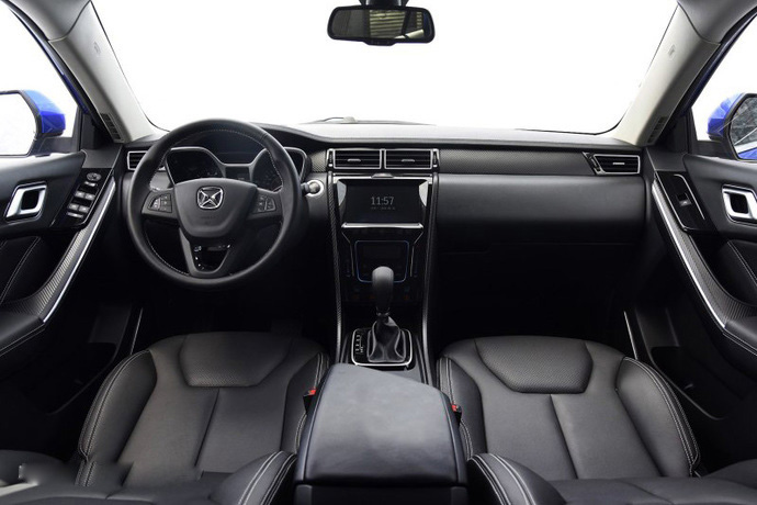 内饰方面:该车将提供全黑和上深下浅的双色内饰,中控台线条十分平直,整体造型看起来也非常简洁。配置上,该车全系标配了车身稳定系统,高配车型还提供了前排侧气囊、头部气囊、全景天窗以及自动空调等配置。
