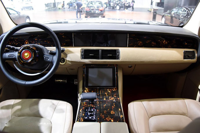 内饰方面:新车的内部整体采用了上深下浅的配色,并运用了大面积的木纹饰板,其中新车中控台有着十分简洁的设计,大面积的直线条应用给人感觉稳重大气。此外,新车方向盘为两辐式的设计,方向盘中央的装饰也有着经典的红旗风格。