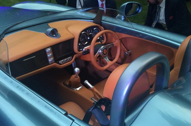 这款车定位一款敞篷跑车,不过我们可以看到其前挡风采用的是无边框设计,极其个性。在车内,Bristol Bullet采用大面积的皮质材料包裹,而在车内仪表、换挡杆、按钮等部位,则是高光的镀铬装饰,豪华感十足。