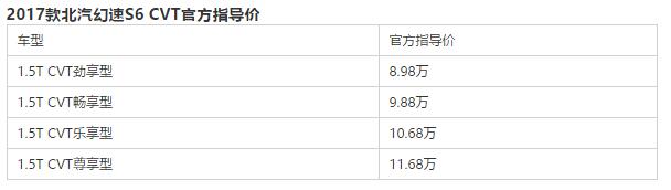 北汽新款幻速S6 CVT最新售价8.98-11.68万