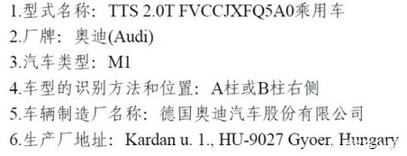 奥迪新一代TT已经于今年6月在国内正式上市,据悉,其性能版TTS已经进入了申报阶段,未来将正式进口国内。从工信部曝光的两份申报信息来看,奥迪未来将引入TTS和TTS Roadster两款车型,前者采用Coupe型设计,后者采用软顶敞篷设计。
