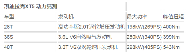 动力方面预计凯迪拉克XT5和CT6相同,将有高功率版2.0T涡轮增压发动机、3.6L V6自然吸气发动机、3.0T V6双涡轮增压发动机可选,新车全系标配8AT变速箱,并将可选全新的AWD四驱系统。