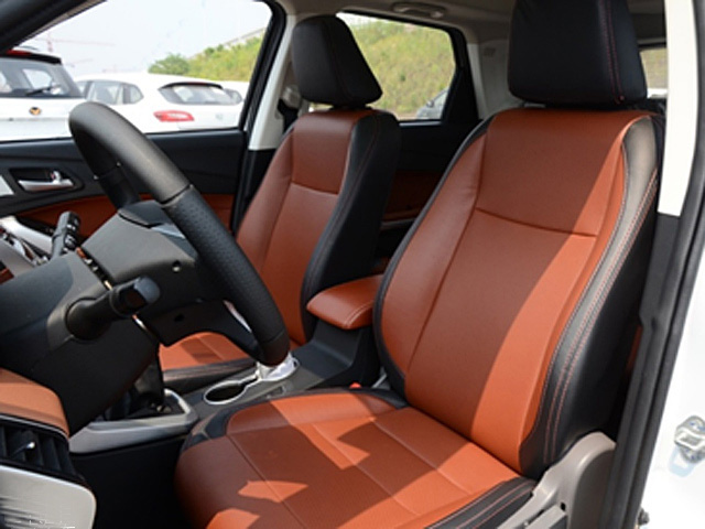 新车采用黑色与橙色两种颜色搭配,中控台采用钢琴烤漆面板,并配有9寸悬浮式液晶显示屏,视觉效果大气时尚。新车还采用多功能平底式方向盘,还配有银色装饰。