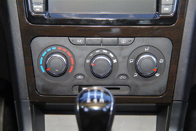 其空调采用旋钮调节方式,对于所谓的阻尼感就不要想了,但确实看上去显得还不错,可以空调内外循环调节还是机械拉线式横向拨杆,未免显得有些过于复古。