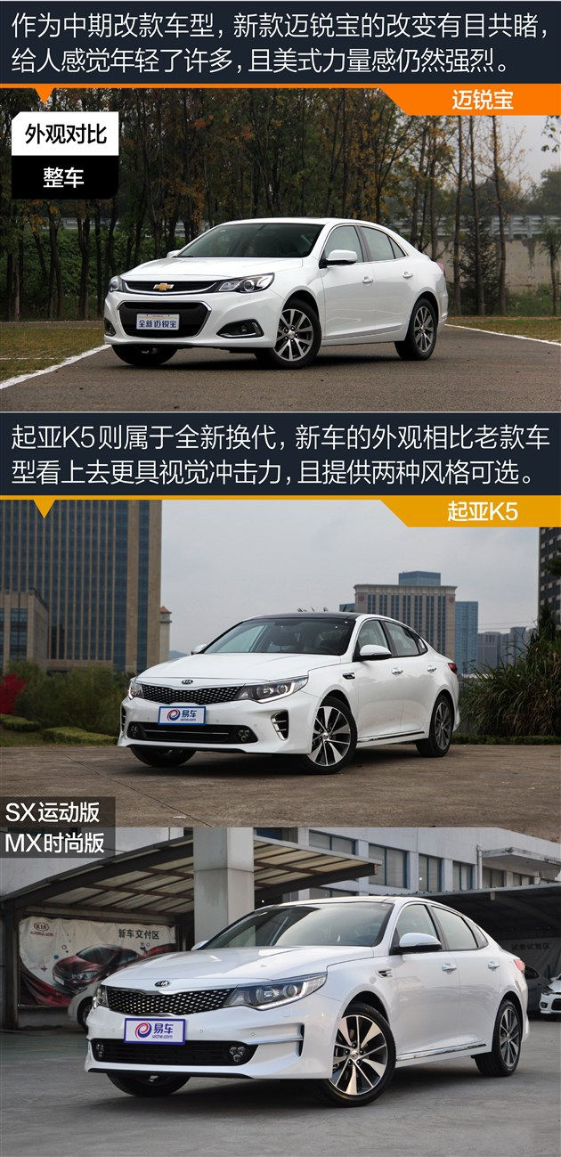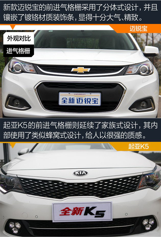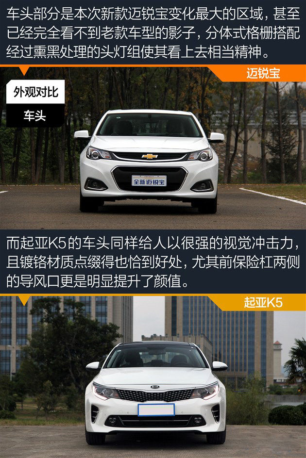 | 车型 | 雪佛兰迈锐宝 | 起亚K5 |