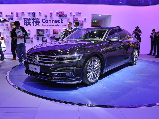 关于辉昂车型造型设计方面与早前日内瓦车展首发的展车在造型设计方面保持一致,只是在轮毂造型方面略有不同。大众PHIDEON前脸采用了标志性的大众家族式进气格栅,两侧前大灯组造型也符合大众最新设计理念,下进气格栅连成一体,增强运动感。