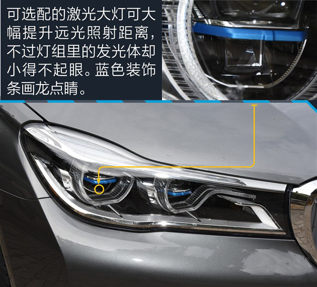 当然,宝马7系的头灯技术也已经赶上甚至有些反超奔驰了。比如在宝马740Li领先型上,你可以选装激光大灯。这可是奔驰S级、甚至奥迪灯具厂中都不可享有的世界领先科技。