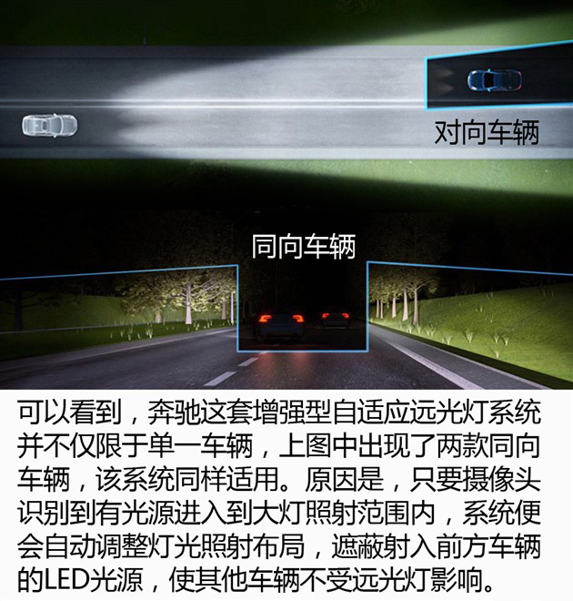 奔驰设定对行人进行补光闪烁警示,对动物不作警示,仅在显示屏中进行标注处理,无蜂鸣警报声。